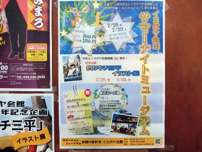 | 2017年7月28日(金) 「誘客推進」業務 「イヨボヤ会館」がイベント盛り沢山です(^o^)丿 今日から「釣りキチ三平」イラスト展が始まりました(^<^) 今夜と明日の夜は「サマーナイト・ミュージアム」も開催されます(^◇^) 「特別展」の準備(採集)は職員で行っています(^<^) 事業「144.4」→「144.9」SE 酒「158.7」SE 甘「32.8」SE 3.5 |