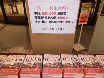 | 2017年7月7日(金) 「管理運営」業務 祝!『村上大祭』 本日快晴です(^◇^) 今日は、「無料公開」になります(^o^)丿 著者「横川健」様のご厚意により、写真集「村上大祭」を贈呈します(^<^) ※先着「50」名様まで 「インターネット生中継」に出演された、新潟プロレス「シマ重野」様と地域おこし協力隊員の「タカハシナオト」様」(写真無し)が来られました(^◇^) 事業「125.9」→「127.9」SE 酒「90.5」→「96.7」SE 甘「26.1」SE 3 |