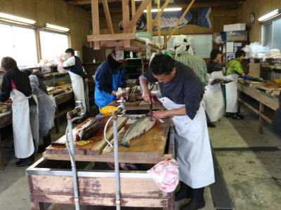 | 2018年10月22日(月) 「収益拡大」事業 「塩引き鮭」を作りました(^o^)丿 全社を挙げての取り組みです(^<^) 前回の反省点を生かして、段取りを改良したので、予想以上に早く終了しました(^◇^) 業「279.6」→「281.7」SE 酒「493.4」→「498.7」SE 甘「63.2」→「64.1」SE 3.5 |