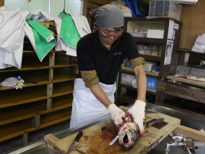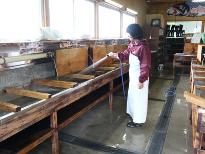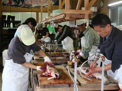 | 2018年10月12日(金) 「収益」業務 「塩引き鮭」を仕込みました(^o^)丿 今年も「生鮭」の値段が高くて・・・・ 待てば値が「上がる」か「下がる」かはギャンブルです(>_<) みんなケガ無く無事に終了しました(^<^) ※研ぎたての「包丁」の切れ味が凄かった(^◇^) 業「257.1」→「259.1」SE 酒「460.6」→「462.6」SE 甘「60.5」→「60.7」SE 3.5 |