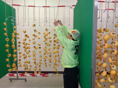 | 2018年10月17日(水) 「収益拡大」事業 「干し柿」を作りました(^o^)丿 「収益プロジェクト」メンバーを中心に作業を行いました(^<^) 「まいづる公園」の管理業務も兼ねて行いました(^<^) 熟した柿が通路に落ちるとヤッカイですので(^J^) 業「264.0」→「265.7」SE 酒「473.4」→「476.7」SE 甘「62.2」→「62.4」SE 3.5 |