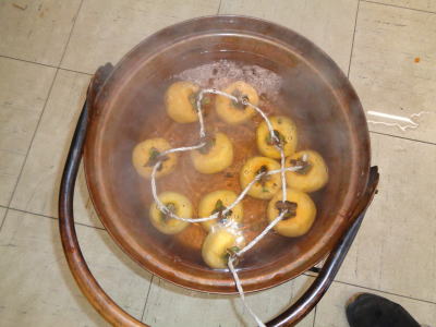 | 2018年10月24日(水) 「管理運営」事業 上に伸びすぎた「柿の木」を切りました(^o^)丿 田嶋局長が「チェーンソー」で切ってくれました(^<^) 切る作業はアッと言うまでした、「生木」なのでマキにする作業が大変そうでした(^J^) 収穫できた「柿」は「干し柿」にしました(^◇^) 業「285.1」→「287.6」SE 酒「503.2」→「506.2」SE 甘「64.3」→「65.0」SE 3.5 |