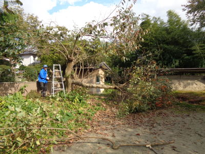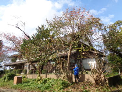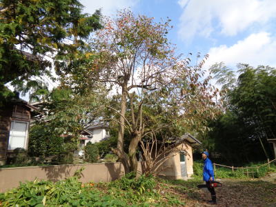 ![]() 上に伸びすぎた柿の木 |