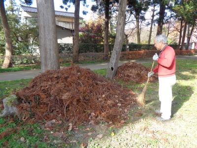 | 2018年12月12日(水) 「管理運営」事業 大風の影響で大量の「スギっ葉」が落ちました(>_<) 「まいづる公園」の管理人さんが1ヶ箇所に集めました(^J^) ※焼却所に運搬しました。 事「375.1」→「376.1」SE 酒「595.5」SE 甘「85.3」→「86.3」SE 3 |