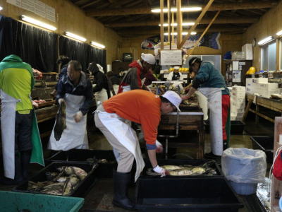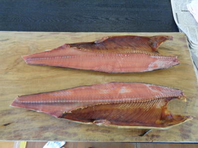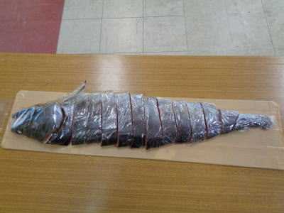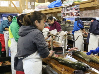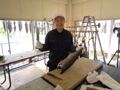 | 2018年12月17日(月) 「収益」事業 「塩引き鮭」の発送が始まりました(^o^)丿 「切り身」加工のご要望の方の鮭を切りました(^◇^) 事「381.5」→「381.8」SE 酒「595.5」SE 甘「87.4」SE 3 |