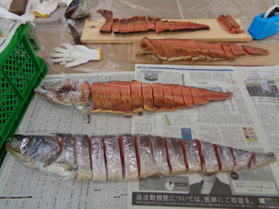 | 2018年12月14日(金) 「収益」事業 「塩引き鮭」の発送が始まりました(^o^)丿 「切り身」の「試運転」を行いました(^<^) 約「1年ぶり」ですが、まだ大丈夫でした(^<^) キレイに三枚におろせました(^◇^) 事「378.5」→「379.3」SE 酒「595.5」SE 甘「86.6」→「86.8」SE 3 |