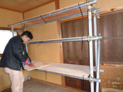| 2018年12月22日(土) 「管理運営」事業 副館長が成田家の倉庫に棚を作りました(^o^)丿 正門の脇に有ります(^<^) 一旦、物を出して冬用の「マキ」を置きます(^<^) 事「382.3」SE 酒「595.5」SE 甘「86.8」SE 3 |