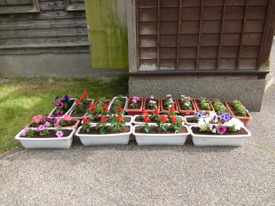 | 2018年5月16日(水) 「管理運営」業務 「佐藤」館長が「プランタ」に花を植えました(^o^)丿 キレイな花を咲かせる為、「土つくり」からされました(^<^) 5月にしては記録的な暑さでした(>_<) |