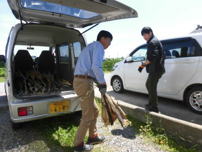 2018年5月6日(日) 「管理運営」業務 「焚き付け」用の木を加工していました(^o^)丿 十分気を付けて作業されるようにお願いしました(^<^) 荻野さんは器用なので助かります(^<^) 業「67.4」→「69.8」SE 酒「14.3」SE 甘「14.6」→「15.4」SE 3.5 |