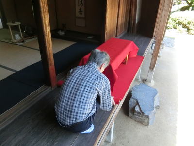 | 2018年5月7日(月) 「管理運営」業務 「施設管理」職員が成田家の管理業務を行いました。 ・クンジョウ作業(虫よけ) ・室内清掃 |