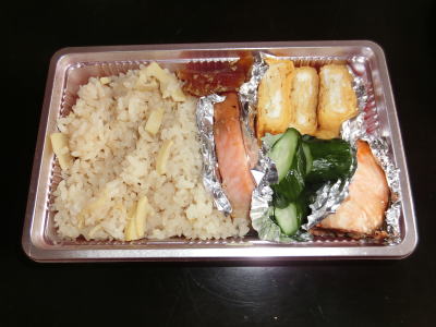 2018年5月27日(日) シルバーさんから「お弁当」を頂きました(^o^)丿 ・タケノコご飯 ・塩引き鮭 ・味噌漬け鮭 ・玉子焼き ・お漬物 ・浅漬け 全てが最高のクオリティー(^◇^) ごちそうさまでした<m(__)m> |