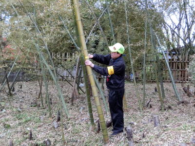 | 2018年5月7日(月) 「管理運営&収益拡大」業務 「竹林」の整備中です(^o^)丿 古い竹や、細い竹に「黄色テープ」を貼りました(^<^) 後ほど、まとめて伐採しましす(^<^) 業「69.8」SE 酒「14.3」SE 甘「15.4」→「16.0」SE 3 |