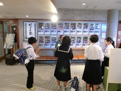 | 2018年9月28日(金) 「管理運営」業務 岩船中学校「一年生」の皆様が「総合学習」に来られました(^o^)丿 この班は「お祭り」について調べて行かれました(^<^)、「桑原」専門員が親切丁寧に対応されました(^J^) リュックが重そうで大変そうでした(^<^) |