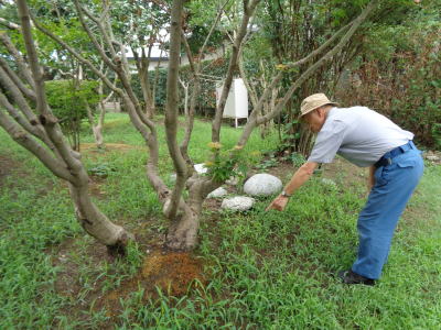 | 2018年9月14日(金) 「管理運営」業務 「施設管理」職員が成田家の管理業務を行いました。 ・クンジョウ作業(虫よけ) ・室内清掃 |