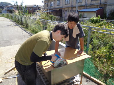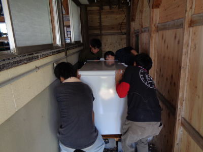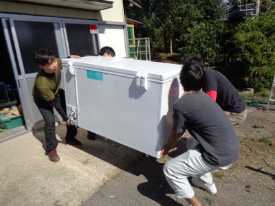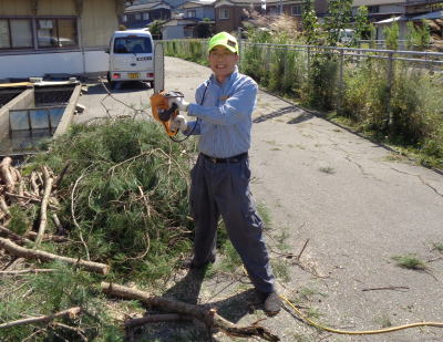 | 2018年9月19日(水) 「収益拡大」事業 「塩引き道場」の「干し場」を改修しました(^o^)丿 風通しが良いように松の枝を切りました(^J^) 「冷凍庫」を入れ、故障しないように囲いました(^<^) 高橋センター長の指示の下、若手3名が頑張りました(^J^) 私は「後方支援」を行いました(^◇^) 業「231.0」→「231.5」SE 酒「428.1」SE 甘「52.6」SE 3 |