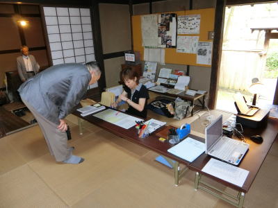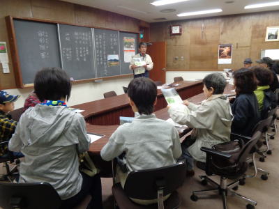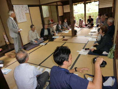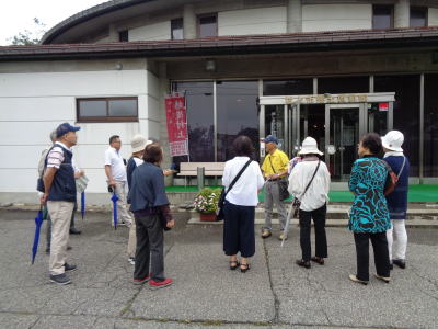 2018年9月7日(金) 「管理運営」事業」 「村上市観光ガイド会」の方がご案内に来られました(^o^)丿 今日は「六斎市(市場)」が開催されていますので、これから散策に行かれるそうです(^<^) 人数が多いのでガイドさんが2名「2グループ」分かれてのご案内になりました(^J^) 市内の料亭で「昼食」だそうです(^o^) 少しお天気が心配ですが・・・(皆様、傘のご用意) |