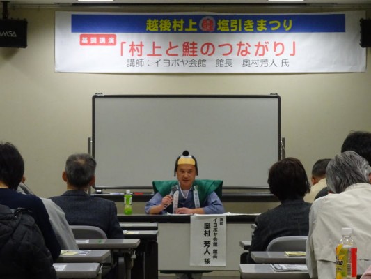 奥村館長が「村上と鮭のつながり」として講演会を行いました(^O^)/