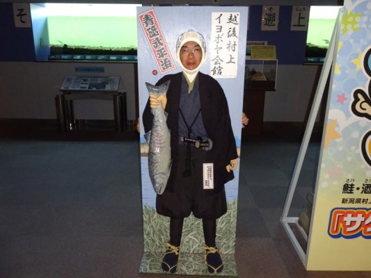 地下の観察自然館には「サケリン」と「青砥 武平治」の顔出しパネルがあります。