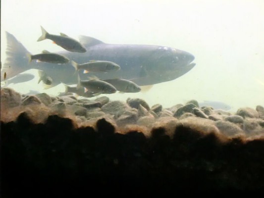 親鮭の産卵行動(種川にて)