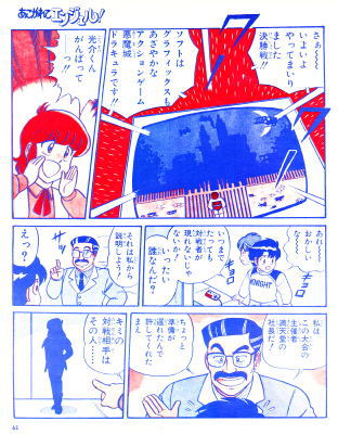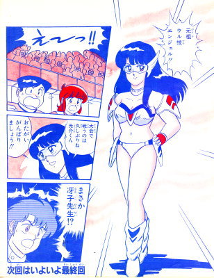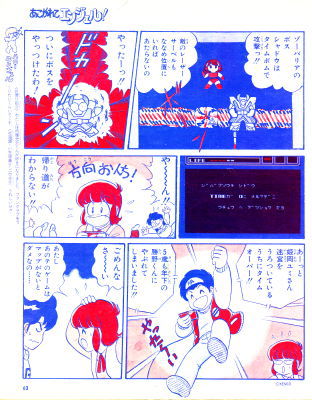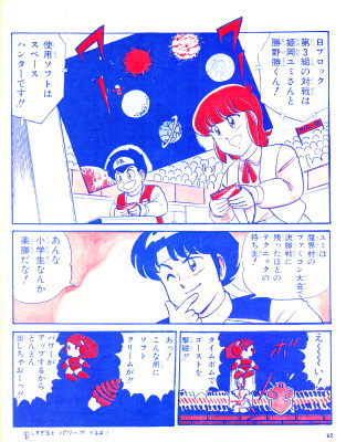 ハローエンジェル <認定!> 神奈川県の今健輔クンと兵庫県の波多野利郎クンには、 それぞれ十両技の認定証を送るからね。 楽しみに待っていてちょうだい! <お便り紹介> わたしは内藤光介くんが好きになりました。 ファンクラブをつくりたいくらいでーす。 (北海道・小笠原薫クン) ▽(ハート)光介、うれしいぜ!! ゲーム画面表示文字 「ジバクソウチ シドウ TIMEガ 0ニ ナルマデニ ウチュウ ヘ ダッシュツ セヨ」 |