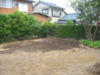 2009年5月25日 成田家の「家庭菜園」実現に向けて「開墾作業」がはじまりました(^o^)/ まず、土を掘り起こして雑草の「根っこ」を取り除きました(根気のいる作業でした) ※「1cm程の根っこ」でも残ると、再度、芽が出るそうです(>_<) 柿の木の下には「ミョウガ」を植えました。 (^◇^) |