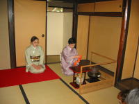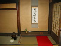 | 2009年5月31日 『重要文化財(国指定)若林家住宅 活用事業』(四日目) 「新緑の若林邸茶会」が開催されました(^o^)/ 今日は「石州流」の皆様でした(^◇^) ※「石州流(せきしゅうりゅう)」は片桐石州(貞昌)を流祖と仰ぐ流派です。 受付の美人「茶ガール」のおかげで今日も「満茶(員)」でした(^◇^) |