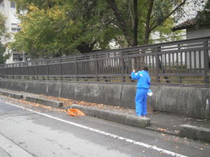 | 2011年11月20日(日) 今日、第2回目の村上市「三之町区」主催の『三之町区のみんなで落葉拾いをしましょう』が開催されました(^o^)/ 昨夜の強風で周辺は「落葉だらけ(>_<)」 濡れているので「イチョウの葉」が、道路に「くっついていて」なかなか掃けずに苦労しました(^_^.) 休日の女性職員も参加しました(^J^) ※関連記事2011年11月6日 |