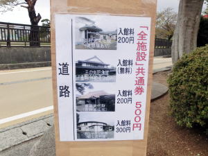 駐車場から「若林家」へ行くルート上に、「おしゃぎり会館」との『お得な共通券』の紹介を目的として設置しました(^<^)