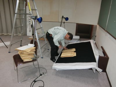 2016年11月10日(木) 「管理運営」業務 副館長が「三の丸記念館」に棚を製作中です(^o^)丿 「小道具」や「消耗品」を整理します(^<^) |