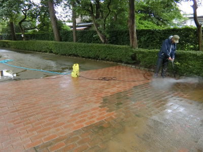 | 2016年6月30日(木) 「管理運営」業務 「まいづる公園」管理人の荻野さんが「水圧器」でコケの除去をしてくれました(^o^)丿 水道水を「機械」につなぎ、「高圧」の水ジェットで除去します(^<^) 予想以上に腕に振動がきます(^J^) 事業「241.2」→「145.1」SE 酒「213.6」→「219.2」SE 甘「26.1」→「26.7」SE 3 |