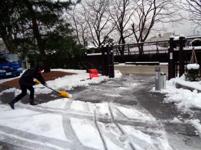 | 2018年12月8日(土) 「管理運営」業務 とうとう「雪」が降りました(-_-) 「パワフル」な「美女」が「雪かき」をしていました(^o^)丿 地面を出しておくと次の日が楽です(^J^) 事「368.1」→「370.2」SE 酒「593.0」SE 甘「83.5」→「84.2」SE 3 |