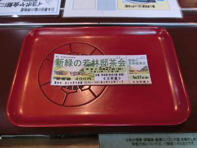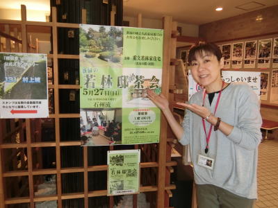 ![]() 茶席「前売り券」:一席「400円(お菓子付き)」(石州流) ※若林家の入館料(200円)を含みます(^◇^) |