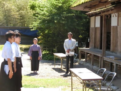 | 2018年5月18日(金) 「管理運営」業務 「施設管理」職員が成田家の管理業務を行いました。 ・クンジョウ作業(虫よけ) ・室内清掃 |