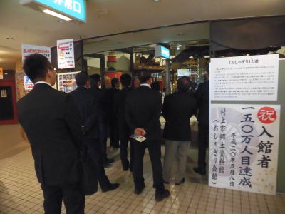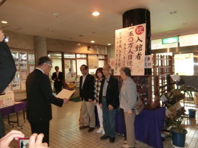 | 2018年5月8日(火) 「管理運営」業務 村上市郷土資料館(おしゃぎり会館)の有料入館者数が「150万人」を超えました(^o^)丿 もうすぐ達成しそうですと「高橋」村上市長にお伝えしたら、お祝いに駆け付けてくれました(^<^) 「高橋」市長が「認定書」、「花束」、「記念品」をお渡し致しました(^<^) 黒崎様は「喜寿(77歳)のお祝い旅行」中だそうです(^◇^) おめでとうございました<m(__)m> 業「69.8」→「71.7」SE 酒「14.3」SE 甘「16.0」SE 3 |