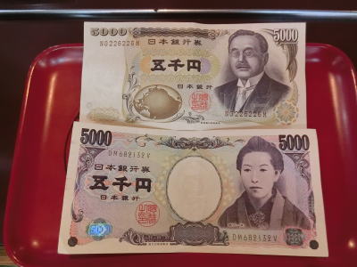 | 2018年5月4日(金) 「管理運営」業務 懐かしい「5千円札」に出会いました(^o^)丿 「新渡戸稲造」 ※昭和59年11月1日〜 業「57.4」→「61.6」SE 酒「14.3」SE 甘「13.5」→「13.8」SE 3 |