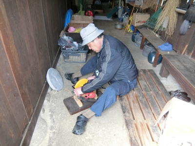 2018年5月6日(日) 「管理運営」業務 「焚き付け」用の木を加工していました(^o^)丿 十分気を付けて作業されるようにお願いしました(^<^) 荻野さんは器用なので助かります(^<^) 業「67.4」→「69.8」SE 酒「14.3」SE 甘「14.6」→「15.4」SE 3.5 |