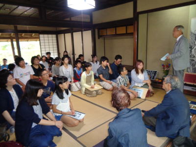 2018年9月7日(金) 「管理運営」事業」 「村上市観光ガイド会」の方がご案内に来られました(^o^)丿 今日は「六斎市(市場)」が開催されていますので、これから散策に行かれるそうです(^<^) 人数が多いのでガイドさんが2名「2グループ」分かれてのご案内になりました(^J^) 市内の料亭で「昼食」だそうです(^o^) 少しお天気が心配ですが・・・(皆様、傘のご用意) |