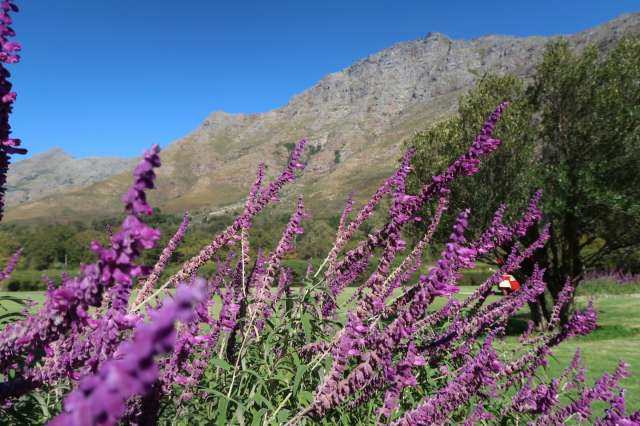 南アフリカは今は初秋、ヨハネスブルグは1700mの高地なので朝晩涼しかったです。ケープタウンは地中海性気候で温暖ですが、夏は乾期冬は雨期とはっきりした気候だそうで、夏の名残で雨が降らず庭への散水制限があって庭木が枯れたと嘆いていました。