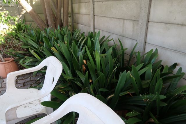 | 君子蘭は地植えでたくさん茂っていた 秋なので花は終わり |