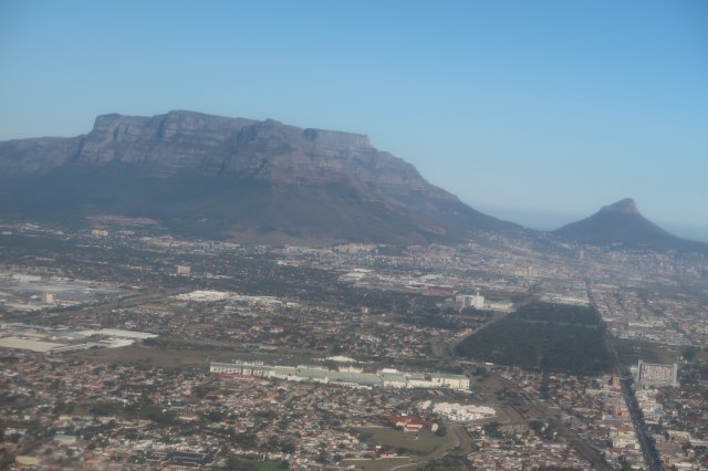 | 飛行機から見たケープタウンの街 テーブルマウンテンとライオンズヘッド |