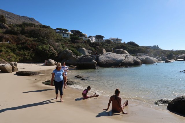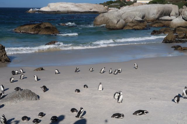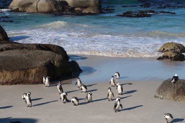 | ボルダースビーチ ペンギンのいるビーチ 、人も泳いでいる |