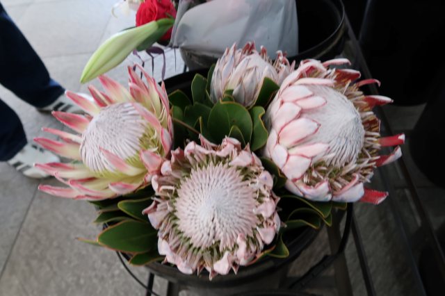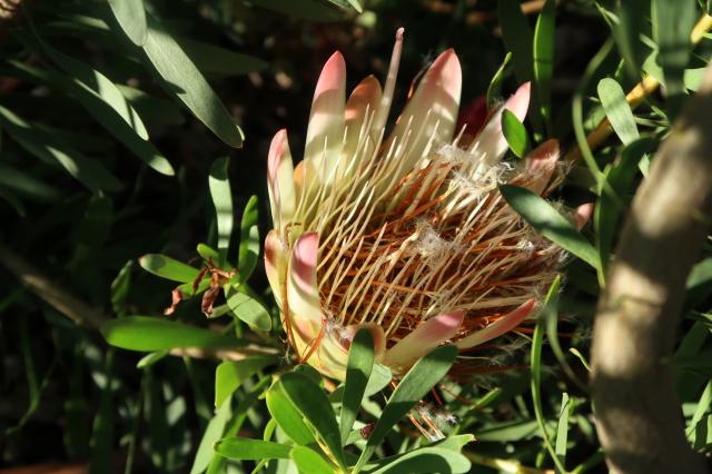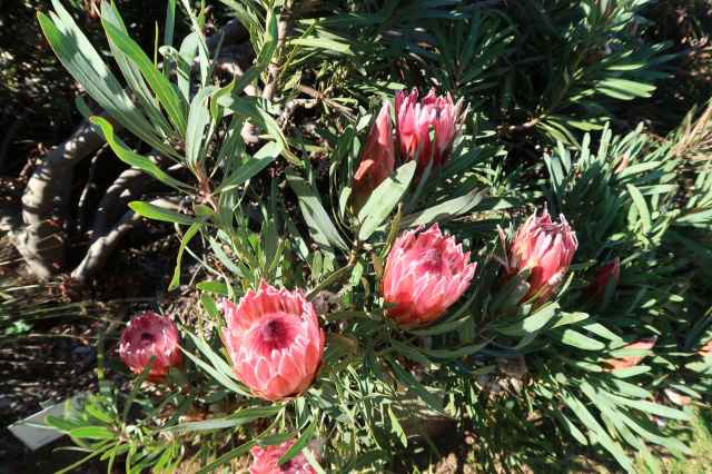 南アフリカの花プロテアは植物園で見ました。郊外の山でも見つけました。