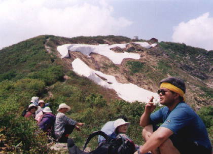 | 2002年再び飯豊本山へ | 三国小屋を前に一休み |