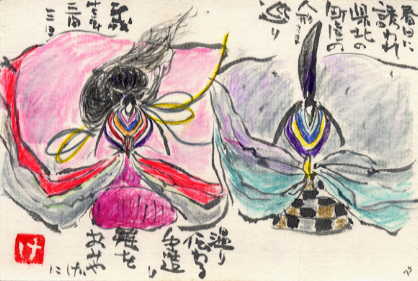 ことから、人形さま巡りの絵手紙を募集し、村上・小町の日本一小さい?美術館