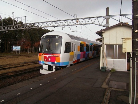【11月23日】 村上を通る羽越本線に臨時快速電車「きらきら うえつ」が誕生し、23日がデビューの日でした。 週末を中心(金・土・日)に、新潟〜酒田間での運転です。 グリーン車並のくつろげるシートで眺望も良く、段差のないフラットな床、1・4両は 景色が楽しめるパノラマスペース、2号車のラウンジ車両は沿線の銘菓や銘酒が楽しめる 純和風ラウンジがあり、全席指定、4両編成で片道510円の指定席料金が乗車券の 他に必要です。 車両は沿線のさまざまな自然の”きらきら”を連想させる 外観です。 地元村上駅では「瀬波温泉 潮太鼓」等の歓迎のイベントが催されました。 |