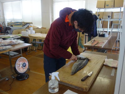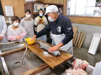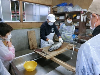 | 2022年12月15日(木) 「伝統文化」業務 「塩引き鮭」の加工の練習をしました(^o^)丿 今年の「初切り」です(^J^) 腰は痛いですが、腕はまだ大丈夫みたいです(笑) 3 |