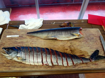 2022年12月18日(日) 「伝統文化」業務 「塩引き鮭」の加工の練習をしました(^o^)丿 元「料理人」なので腕は確かでした(^<^) 「包丁を持たせたら別人」と言われています(^J^) 3.5 |