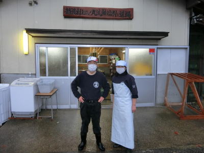 | 2022年12月2日(金) 初雪が降りました(>_<) 「伝統文化」業務 「越後村上三ノ丸流鮭塩引き道場」にお手伝いに行きました(^o^)丿 本日が「最終日」で「大トリ」の指南役を勤めました(^J^) 今回は「石井」師範とペアでした(^J^) 3.5 |