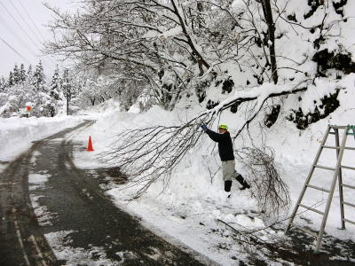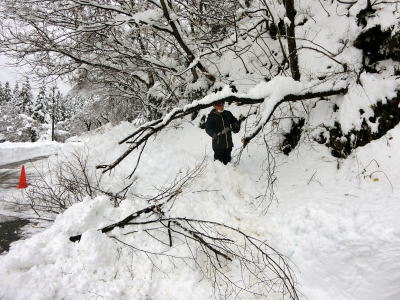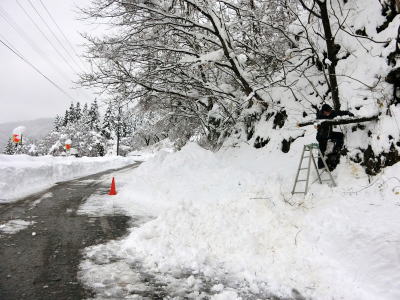 | 2022年12月20日(火) 「管理運営」業務 大雪になりました(>_<) 庁用車を出すだけでも一苦労でした(^o^)丿 入口「坂の途中に倒木で除雪出来ない」との事なので、施設管理員と二人で処理しました(^J^) |