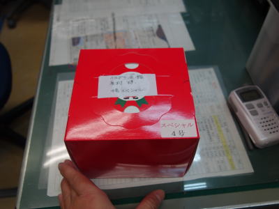 | 2022年12月23日(金) 「奥村」次長より一足早い「クリスマスケーキ」の差し入れが有りました(^o^)丿 今日は「塩引き鮭」の梱包・発送の「作業日」なので、職員が多めです(^<^) 私も「アイス」を差し入れました(^J^) 3.5 |